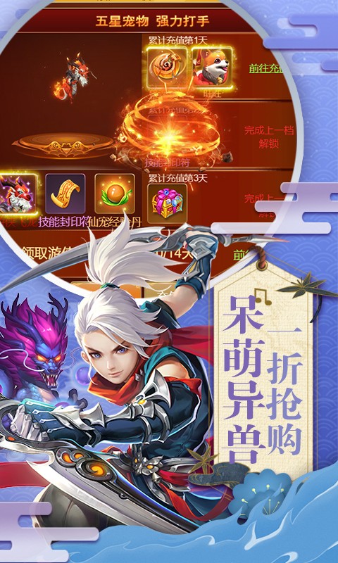 单日单笔30元:低级神石*1,神宠宝盒*1,秘术残卷*20;