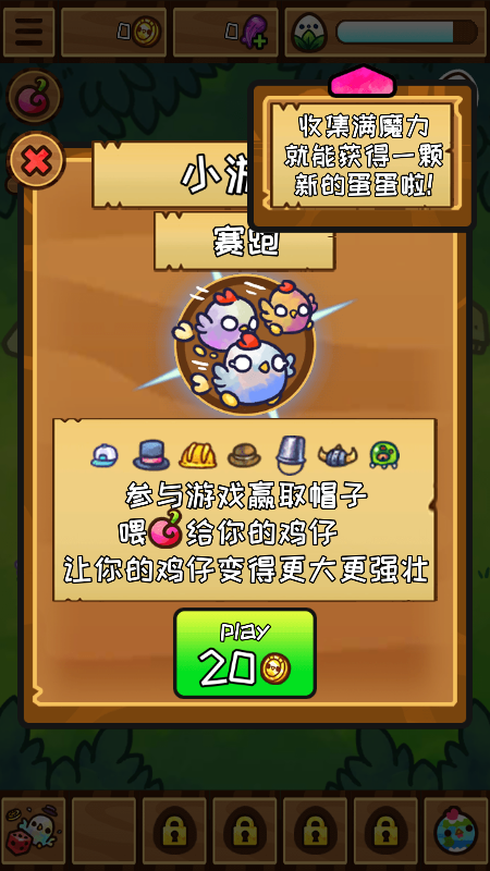 魔力鸡仔是一款超萌梦幻冒险闯关小游戏,全新的养成模式,玩家们要扩大自己的养殖场去增加养成材料饲养小鸡,魔力鸡仔小游戏随着自己的养殖场扩大,可以招募更多的饲养员来管理自己的养殖场,各种不同的游戏玩法,可以让你展示的非常丰富养成技术