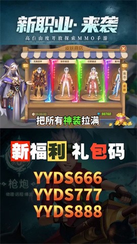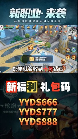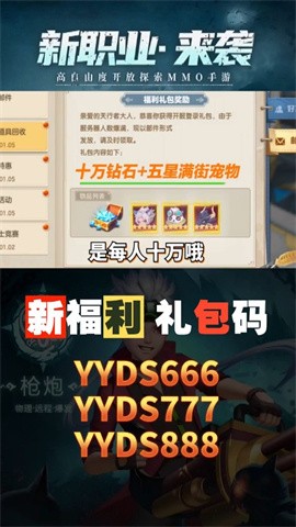 游戏主界面可以找到福利功能,点开之后输出上方的兑换码,过一会你的邮箱里面就会有福利了,十万的钻石、装备大礼包、宠物大礼包都可以有,钻石可以在商城中获得神装武器以及坐骑,装备强化等等,还有月卡可以购买。