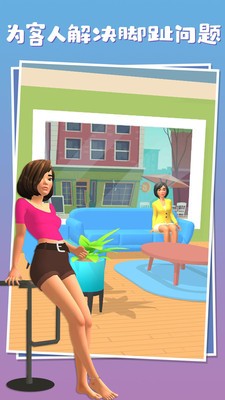 小姐姐的足疗店游戏是一款休闲模拟养成单机游戏,玩家每天都要解决不同顾客的脚趾问题,熟练不同的足部按摩技巧,小姐姐的足疗店游戏里可以体验惊人的美甲操作,任何风格的美甲都可以制作出来,负责不同的足疗教程,接待不同的顾客吧,升级自己的沙龙房间。
