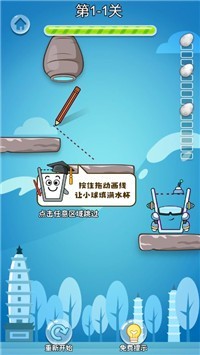 2.你会经常在这款游戏中看到各种各样的画面有高手也有小白,不断的画线完成水杯的任务吧