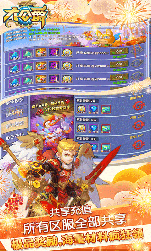 7.拥有共享充值,所有服务器充值共享,免费领奖励!