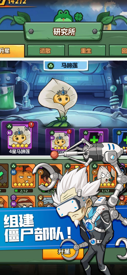 一款经典的僵尸题材塔防射击手游,各种各样的僵尸,大量的植物,未来要抵抗僵尸的攻击,只有正义植物才能拯救我们,人物也很可爱,组建自己的队伍对抗僵尸。