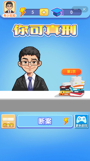 你可真刑啊是一款创意的多人判案闯关小游戏,玩家们需要帮助角色完成各种剧情闯关挑战,选择正确的判决才可以完成各种闯关冒险,你可真刑啊小游戏中不同的道具模式和剧情让你可以模拟当一名出色的小判官正确的判罚各种事情的对错,还收集了海量的案件等你去判决