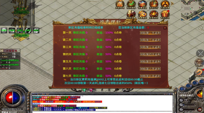 2.玩法不断的复原,完美复制结束战斗,金币快速回收,装备二次回收,热血决斗;