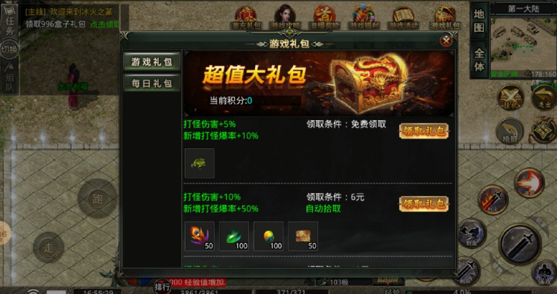 礼包奖励:冰火之精*100,五彩神石*100,乾坤水晶*100