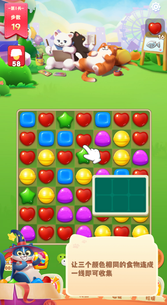 1.滑动屏幕,将相同种类和颜色的块连接起来,即可消除分数,并在规定时间内达到目标;