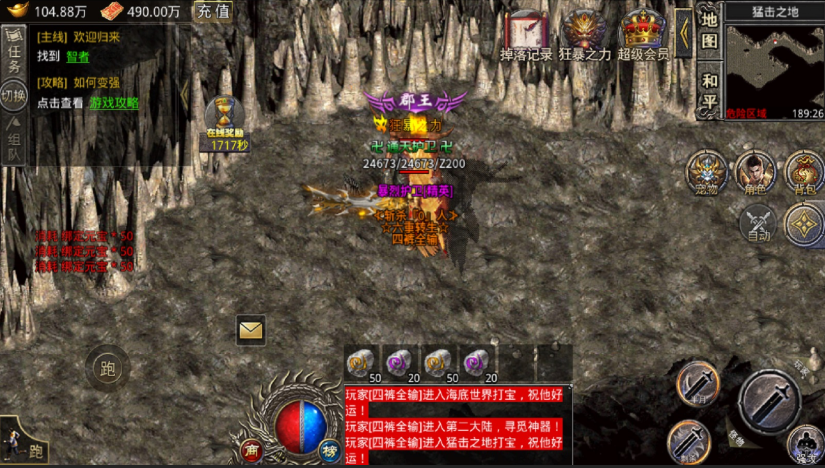 礼包奖励:500000绑定元宝*4,爆率+30%(24小时)*1,4阶特戒盒*1