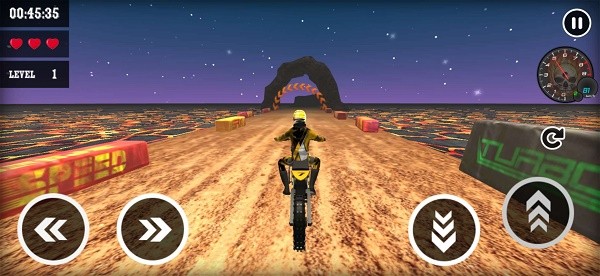 3.还有很多关卡等着你去挑战!游戏中,你会开着摩托车,在一望无际的道路上超车。