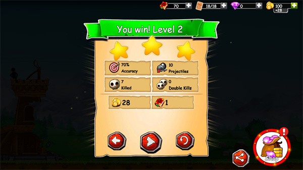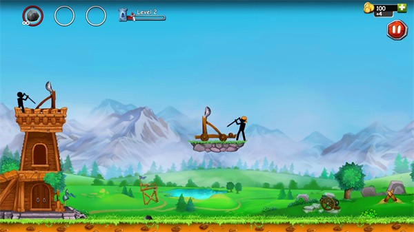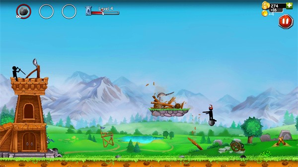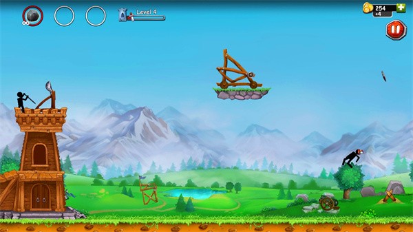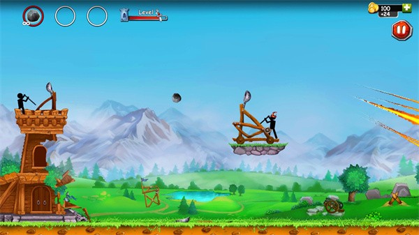 以火柴人为主题、融合物理弹射与塔防策略的休闲射击游戏,玩家需操作投石机守护城堡,通过调整角度与力度精准打击敌人,同时升级装备、布置防御工事,体验策略与操作的双重乐趣。