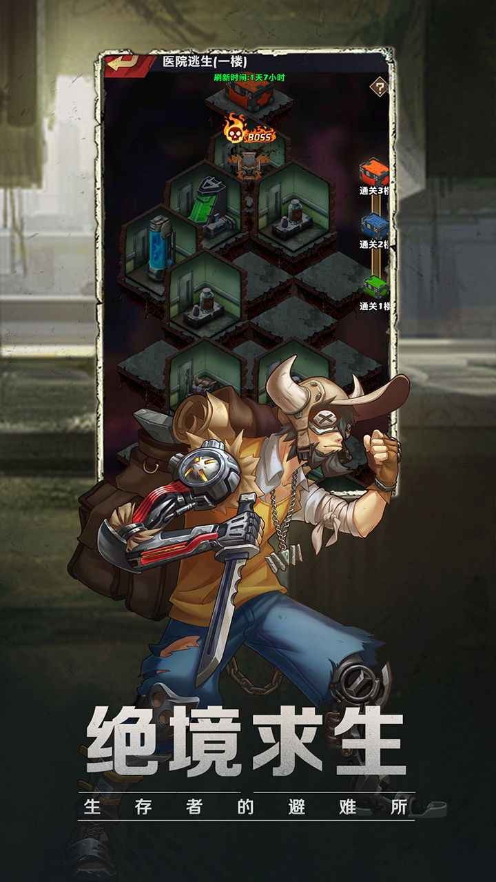 1.末世废土冒险,收集武器提高我们的战斗力,让大家可以轻松的击败敌人