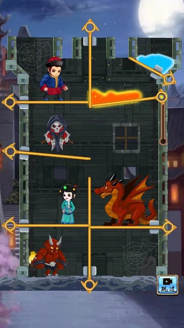 这是一个益智游戏,拯救公主,并不断试图突破障碍,游戏里有很多机关,比如岩浆,怪物,最好小心一点,顺利拔出指针就好。