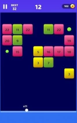 这款游戏各种不同颜色的方块进行亮丽搭配,在视觉上带给玩家精美的体验,在游戏起初只有一个小球,随着不断的玩耍使小球的数量不断增加,还可以通过吃掉砖块附近的小球,使小球数量迅速增加,达到更多消除效果。