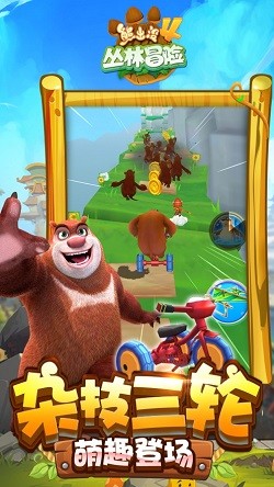 与可爱的熊大熊二以及光头强享受刺激的冒险之旅,在变换的场景中能够进行跑酷,收集金币冒险战斗,还有众多的载具能够解锁,获得更高的分数,体验追逐的刺激感受,避开陷阱以及障碍物。