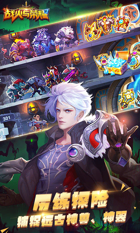2、数以千计的英雄可以选择收集,通过历练探险来捕捉远古神兽和神器,帮助你快速增强战斗力。