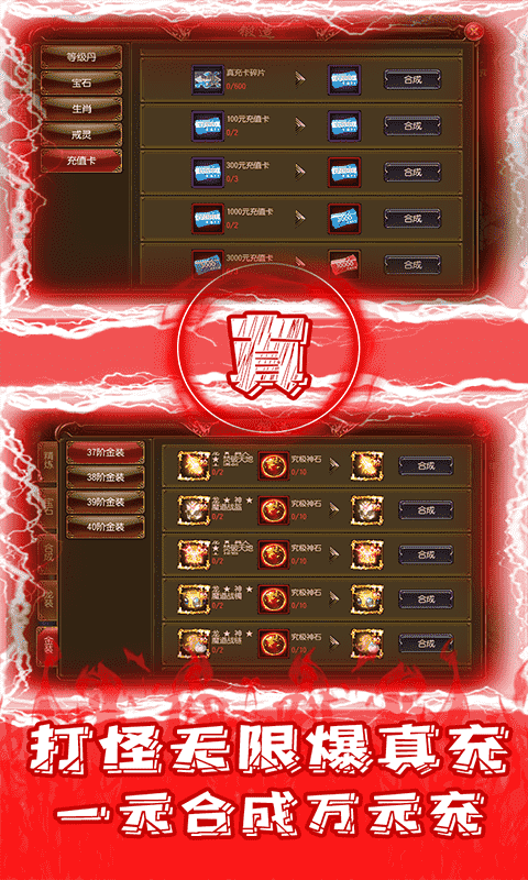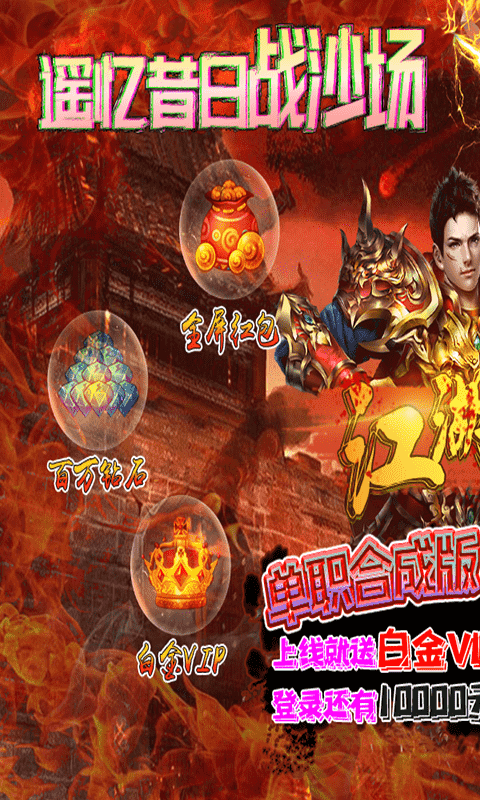 江湖风云BT版是一款非常好玩的单职业传奇类手游。玩家上线即送白金VIP、100元充值卡、元宝*5880000、红包大礼、海量钻石。累计七天登录就送10000元充值卡,更有海量材料、炫酷时装、技能书、顶级宝石可以免费获得。刷BOSS就爆真充卡碎片,可免费合成真充卡。