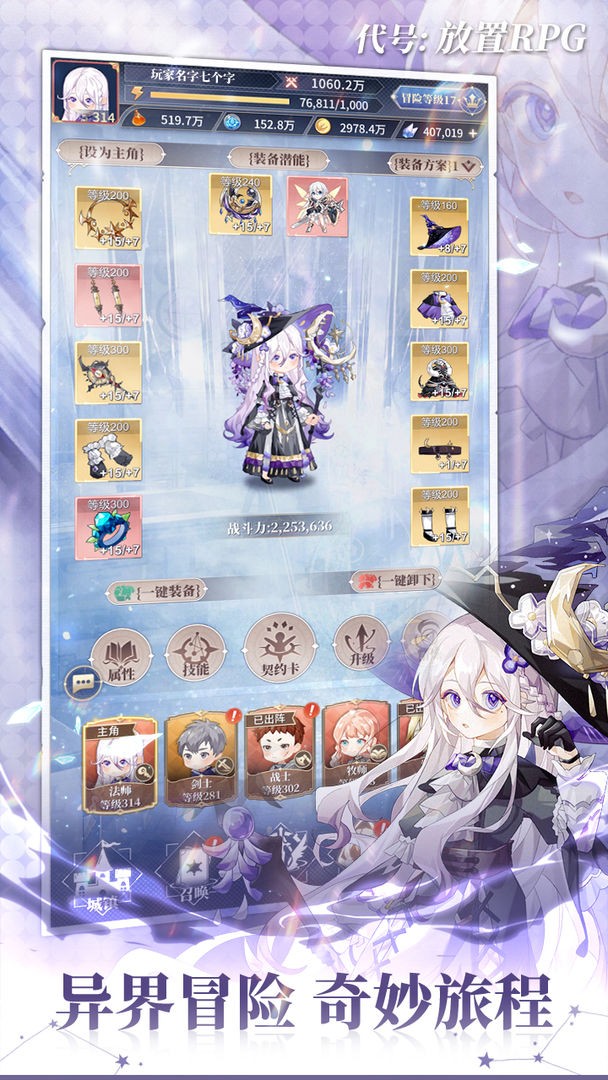 代号放置RPG是一款放置玩法的二次元对战游戏,异界冒险开启奇幻旅程,全新对战模式选择各种挑战冒险以及二次元角色等你去抽取,代号放置RPG游戏放置挂机玩法升级轻松,独特的游戏剧情和模式都可以体验,自由组合阵容竖屏休闲操作更加简单让你感受动感冒险