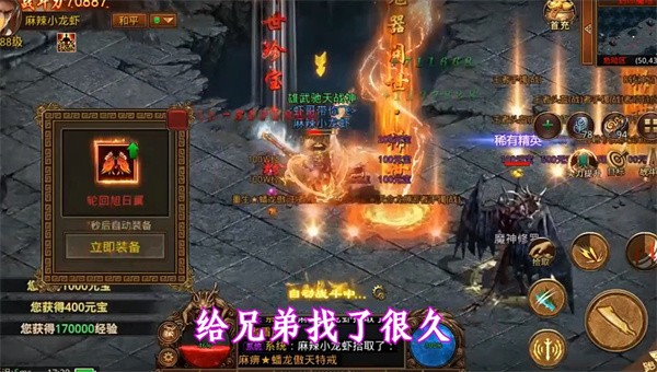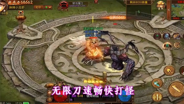 传世无限刀手游地图没有限制,小怪也能爆出极品装备,装备全部秒回收,传世无限刀手游中立即带上装备来对战吧,击杀全部的首领吧、拉上攻速一起对决,收集不同的传奇战宠吧,所有的神器都可以组合起来,快速的避开危险场景,解决不同的敌人吧。