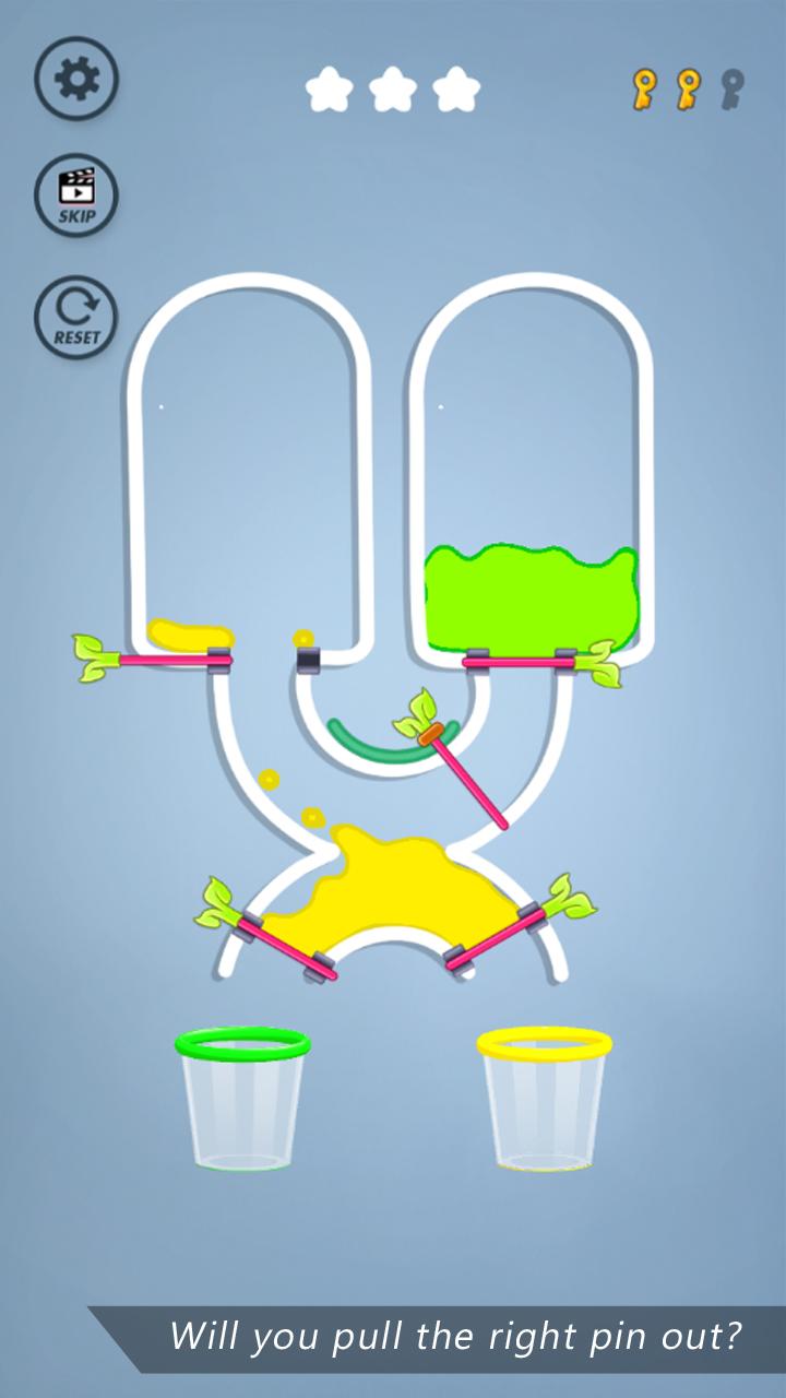 3、不同颜色的液体会因重力而下落,合理地取下销钉以完成更多的高度。