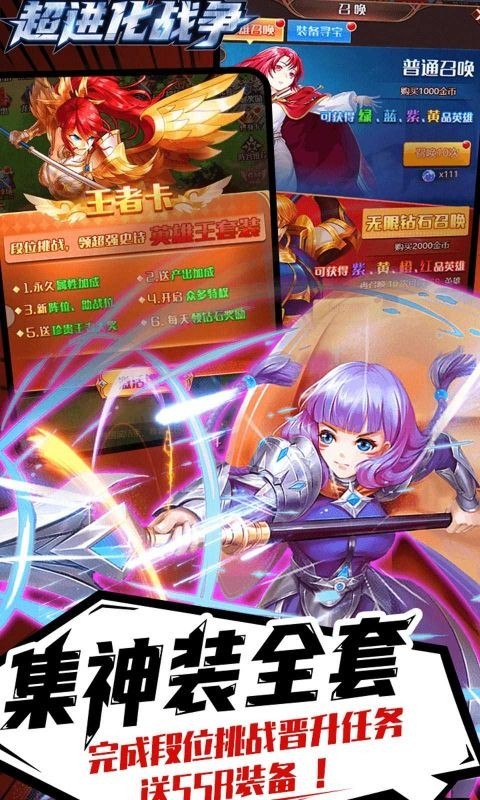 ★超强进化玩法:所有英雄进化至SSR之后 ,可继续进化,究极进化至SSR神话品质!