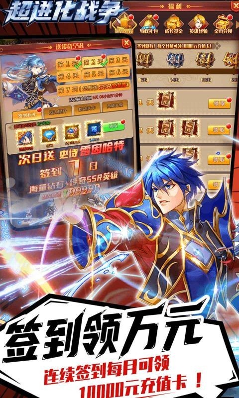 ★SSR免费送:签到送传奇SSR英雄,次日送史诗英雄,7日送传奇SSR!