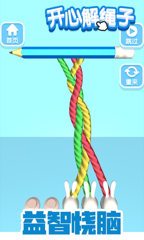 3.有各种各样的谜题。选择你自己的关卡,与你一起突破关卡,完成解绳挑战。