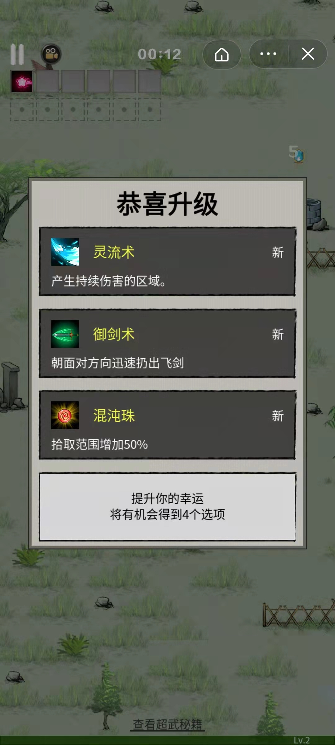 2.升级道具分别有,龙血砂,角色每秒恢复0.1生命值适合秦关月等角色。绮罗幽香,角色幸运值提高10%。御剑术,朝面对方迅速扔出飞剑。灵流术,产生持续伤害的区域.混沌珠,拾取范围增加50%等不同的升级奖励,玩家们可以选择配合各种装备特效来创造流派对战来袭妖怪