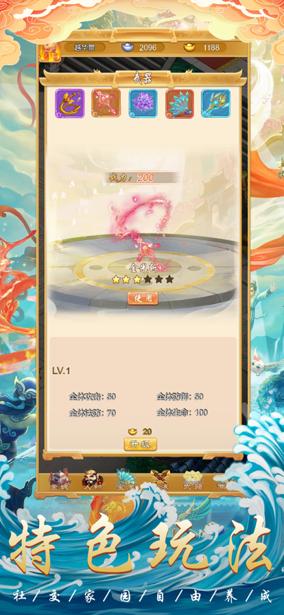 3、玩家与灵宠们互相配合、消灭不同的恶魔,获得最终的奖励,西游场景里的人物可以提高相应的实力;