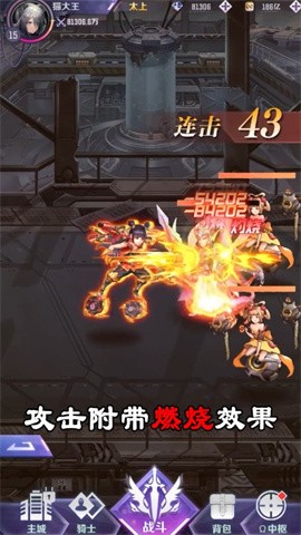 2、许多连招方式都可以使用,每个特技都要消耗怒气值,快速的消灭敌人;