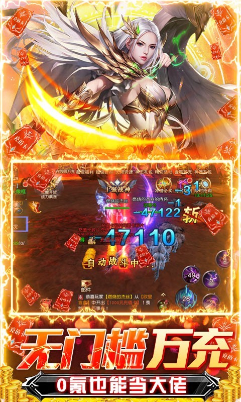 3、百人同屏战斗,以即时自由pk为核心玩法,刀刀秒杀BOSS不再是梦,体验前所未有的刺激快感。