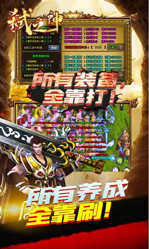 1、所有装备全靠爆,超高爆率,击杀boss就掉极品装备和终极时装。