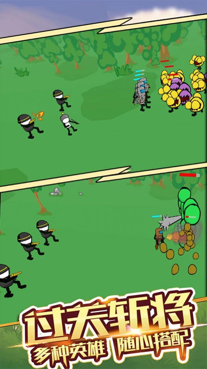 1.去开启热血的战斗过程,每一次的行动都要去全力出击,熟悉不同的火柴人兵种去开启挑战。