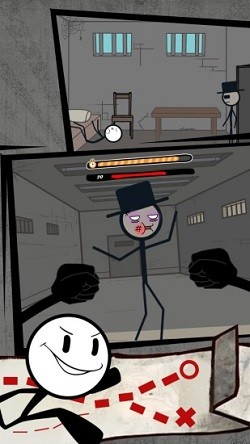 游戏是以火柴人的逃亡为题材的益智游戏,玩家能够帮助火柴人逃离这个监牢,感受众多的挑战,海量的关卡体验转换思维也许就能够找到出去的办法,利用不同的工具进行逃离。