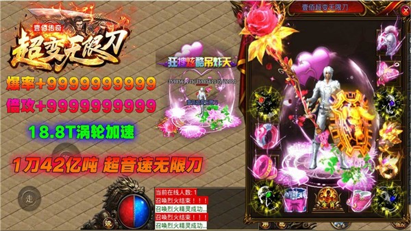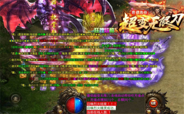 壹佰超变无限刀,大型的热血传奇竞技战斗游戏。壹佰超变无限刀游戏中汇集了很多的副本竞技和战斗玩法,这里还有更多的武器和装备可以通过刷图来获得,掉宝率高,回收装备,元宝可以直接购买月卡等等。安全保障的平台,带给你全新rpg传奇乐趣。
