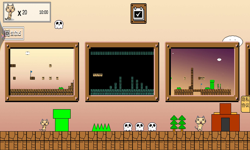 死亡的循环,是一款趣味的猫咪闯关游戏,游戏中你可以开启更多不同的欢乐挑战,在这里你要去完成每一个不同的闯关任务,每一次都可以让你有不一样的惊喜,你还能够去完成更多趣味的内容,死亡的循环游戏中你可以去充分的展现自己的闯关技巧,去轻松的进行跳跃,收集不同的道具来完成新的闯关内容。