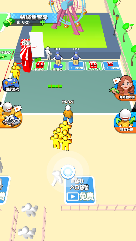 1.有流畅的画风玩家经营着一家游乐场,为了让生意更加的红火,赚取更多的金币