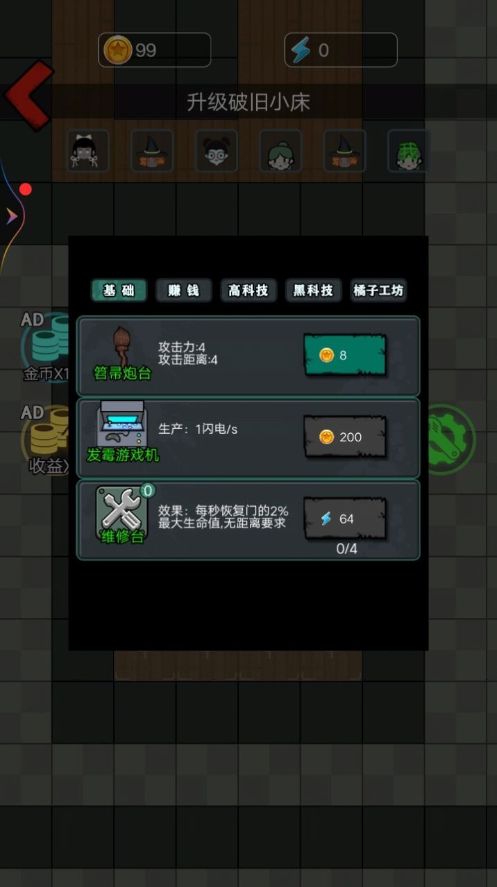 3.在游戏中,玩家只能在房间的空置地板上搭建。玩家点击空楼层后,建筑菜单出现。