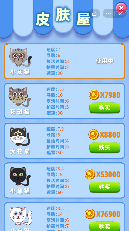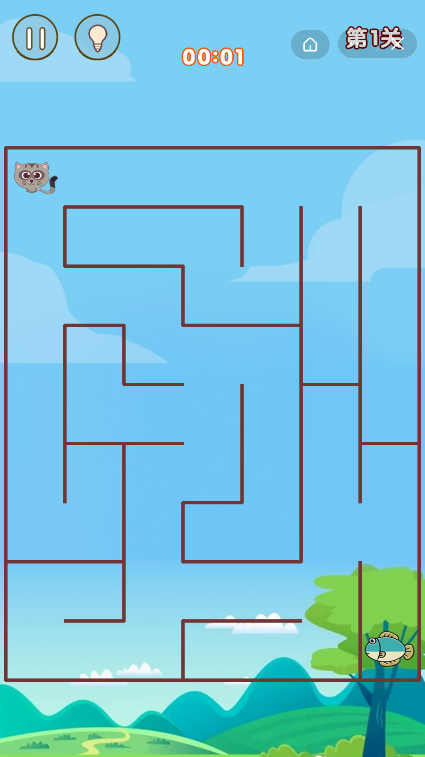 2.小猫的速度也是由快变慢,越快难度等级越高,不同关卡拥有不一样的迷宫