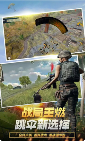 2、开黑队完成冒险体验,选择合适的场合跳伞降落展开射击任务!