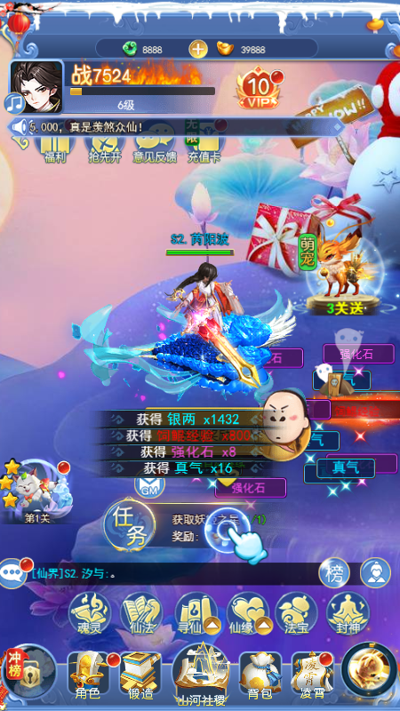 1.收集了各种仙侠萌宠,华丽的羽翼装扮,神奇稀有的武器装备,精彩纷呈