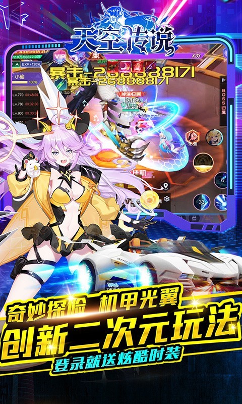 天空传说官方版是一款二次元题材的挂机冒险类游戏。玩家上线就送爱宠联盟炫酷时装和200万金币。游戏中将异能魔法、科学、未来都市异次元等元素相结合,变幻的场景画面,带给你不一样的趣味比拼!
