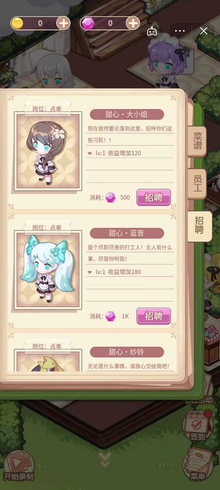 甜心咖啡厅是一款卡通萌趣的经营模拟游戏,在游戏中需要玩家们招募各种可爱的卡通女仆来到你的咖啡厅工作,甜心咖啡厅中各种店铺装修设计都是由玩家们自己选择的,升级咖啡厅的等你让它在周围的地界更加受欢迎吧,更加多变的玩法体验升级女仆们的技能更好的招待你的客人