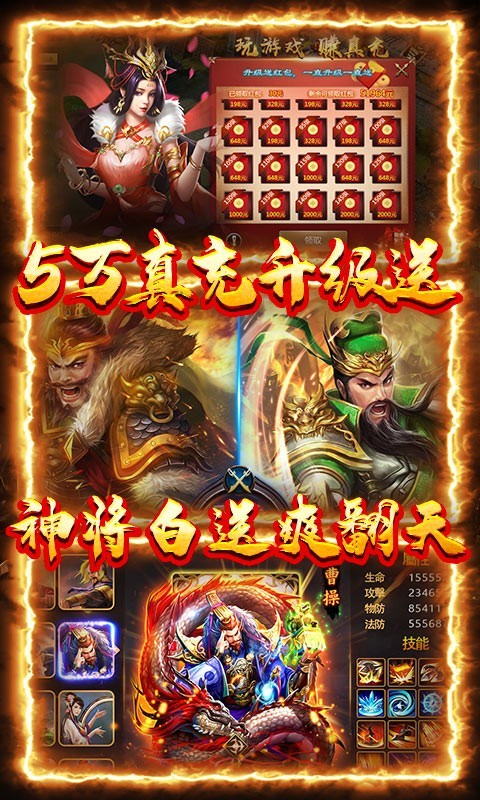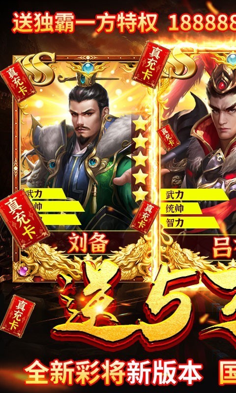 三国荣耀最新版是一款还原三国经典战役的策略类手游。玩家上线即送独霸一方特权、元宝*188888、神·关羽*1。升级领5万充值卡,签到送神将、元宝、各种材料,让你战力飙升。首充即可获得红将赵云和更多进阶材料,助力玩家登顶巅峰!