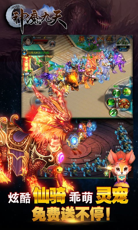 2.全新的故事剧情,里边设置各种神宠坐骑,可以帮助游戏角色增加各种属性,提高角色的战斗力。