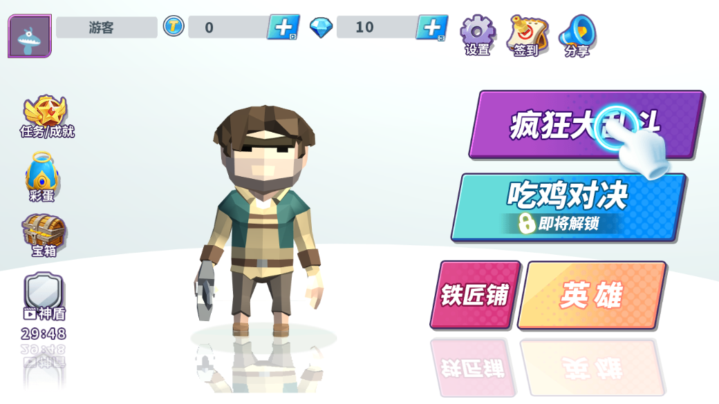 荒野之王是一款多人乱斗射击对战游戏,清新的画面设计,还有疯狂的挑战场景,在游戏里主要任务就是寻找食物和水更好的生存下去,荒野之王小游戏可以选择自己喜欢的角色,去很好的训练和培养,查看周围的情况,了解到更多的战斗方案,不断的前进躲避各种危机的出现完成射击对战