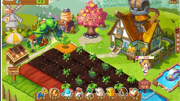 1.依旧是我们所熟悉的界面,还有着一系列的农场管理功能,轻松的去一键收获你的作物。