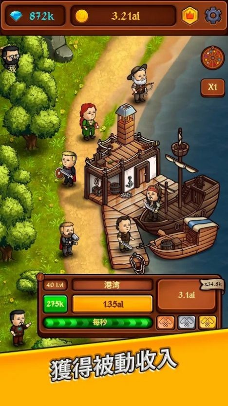 王国空闲黄金大亨,一款模拟建造类型游戏,王国空闲黄金大亨中玩家可以根据自己的王国来打造一个全新的地图哦,这里所需要的材料都是可以利用挖矿或者雇人过来帮你砍树来获得的,同时你需要克服更多的困难来打造新的国王,想玩的就来试试吧。