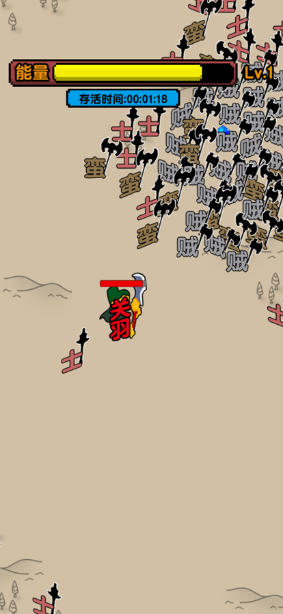 无双割草,一款玩法不错的割草冒险参与西游。无双割草游戏中玩家可以跟随着自己的操作在地图进行一系列的战斗哦。游戏里的敌人和主角都是以文字为主,这里还有很多的三国武将英雄可以选择的1,大型的乱斗现场,带给你极致的刺激体验。
