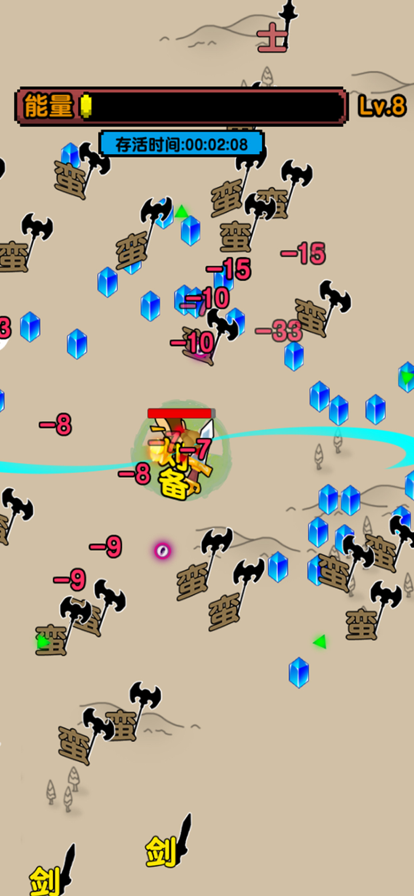 1.在游戏中,玩家需要灵活的控制自己的角色躲避一个又一个的危险,不断的割草,清除怪物。