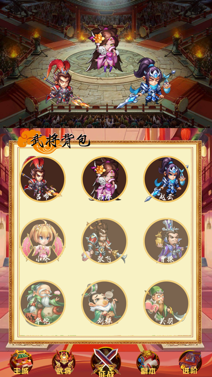 1.在这里你可以去招募更多的三国名将进行作战,所有的冒险都是热血的,你能够完成不同的挑战任务。